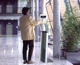 eReception ist ein Terminal mit Touchscreen, an dem sich Besucher anmelden können